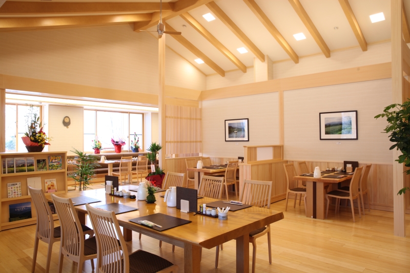 信州産のそば粉を使用した、毎朝うちたてのそばを、明るく開放的な空間で召し上がれます。